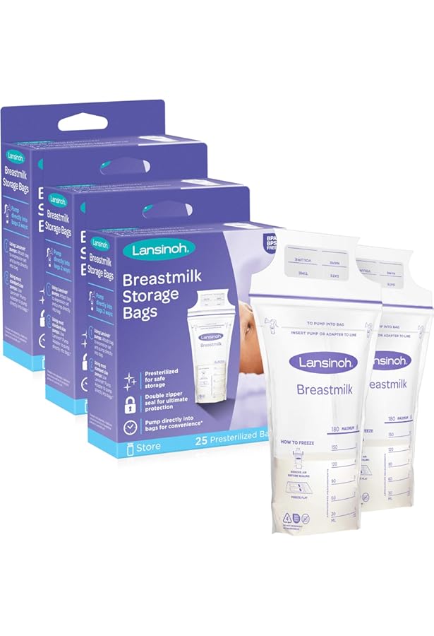 Amazon Com Lansinoh Breastmilk Storage Bags 50 Count With 2 Pump Adapters Easy To Use Milk Storage Bags For Breastfeeding Presterilized Hygienically Doubled Sealed For Refrigeration And Freezing 6 Ounce Baby
